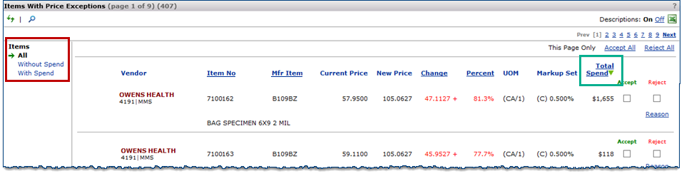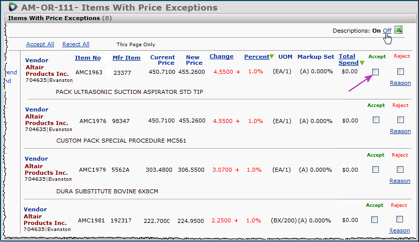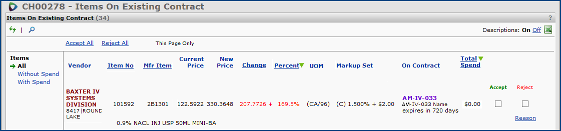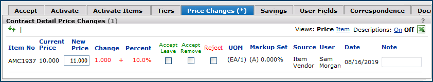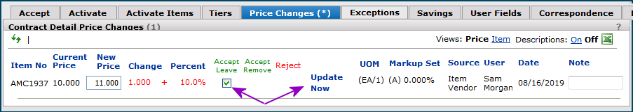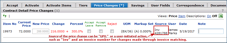 While we are on the subject, you can Accept/Leave or Accept/Remove price changes for other GPO contracts, but not reject them. The Reject option is grayed out.