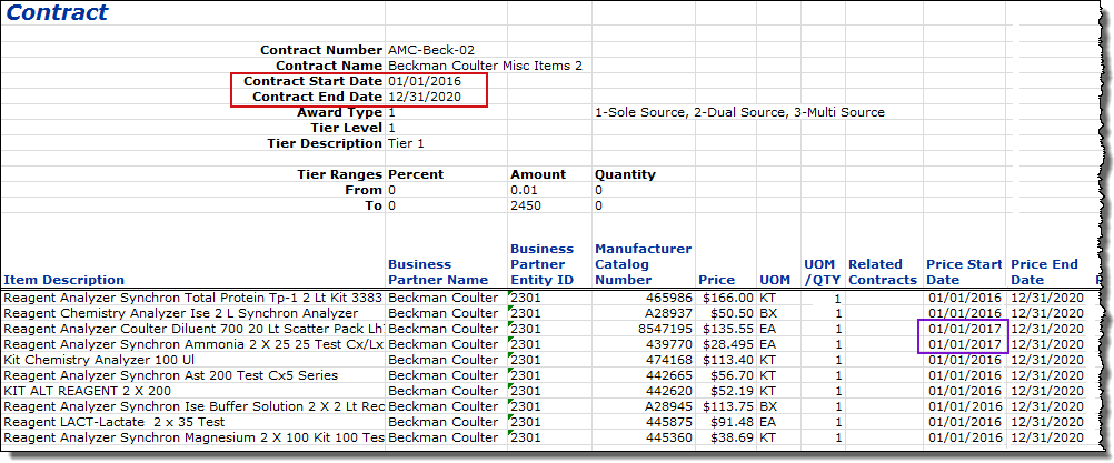 Figure 61 - An Expired Contract That Has User- Initiated Price Changes