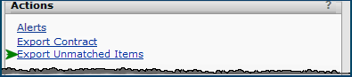 You can manage unmatched items on a single contract and for all contracts. On a single contract, in addition to managing items for individual vendors, you can simply export all unmatched items to Materials Management or to a network location. You can also add vendors to a contract to handle the problem of unmatched items.