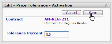 Sourcing and Contract Management uses a contract tolerance to compare the current price of an unactivated item to the contract price for that item. A contract tolerance is contract-specific, so this tolerance is only used for the current contract. If a new price is out of tolerance, a price exception is flagged on the Items with Price Exceptions panel.