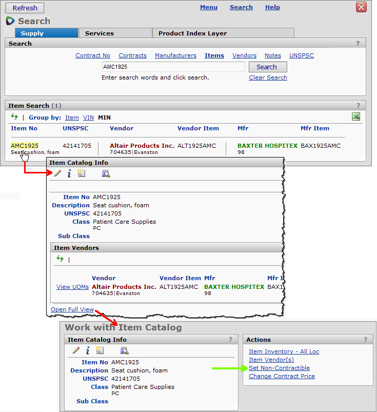 The "Work with Item Catalog" page appears.- On the "Work with Item Catalog" Actions panel, click Set Non-Contractible.