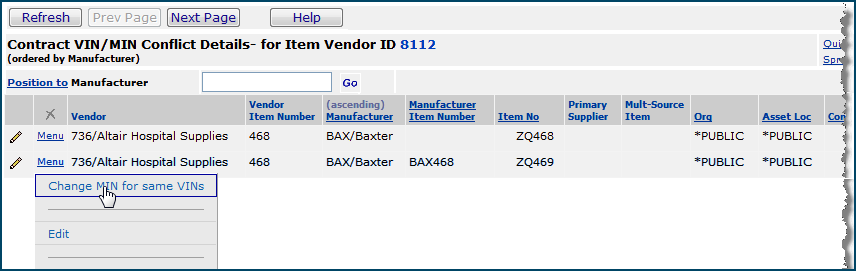 | Existing Contract > | Manual Item Match > | Maintain Matches |