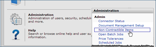 You can view a list of non-contractible items from the Administration > Admin menu (Figure 64).