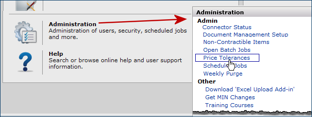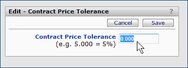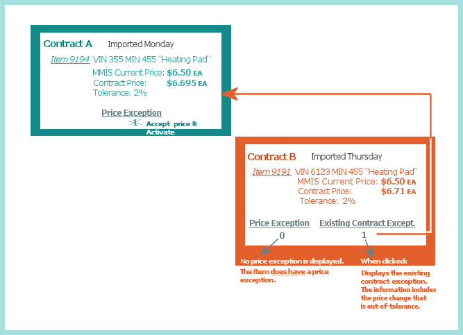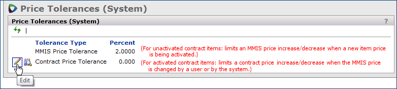 This tolerance is system-wide, meaning that the same tolerance is used when comparing prices for items on all contracts that come into the system. If the new price is out of tolerance, a price exception is flagged on the Items with Price Exceptions panel.