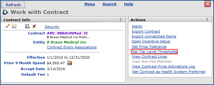 In accepting a local contract, you select the tier whose prices you are using. Acceptance makes contract data available to Analytics, Savings, and Projects.