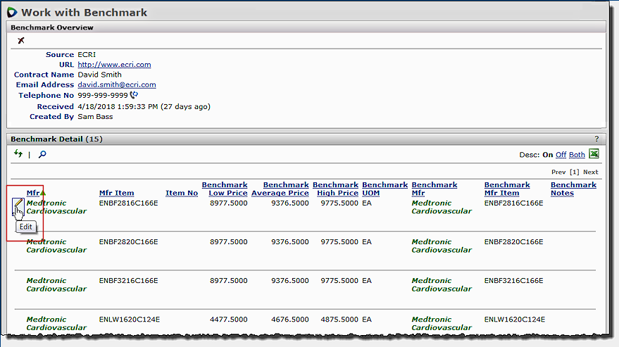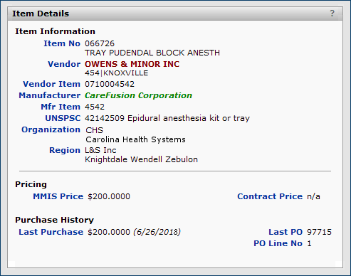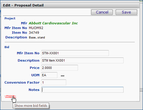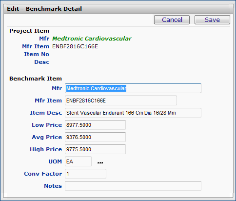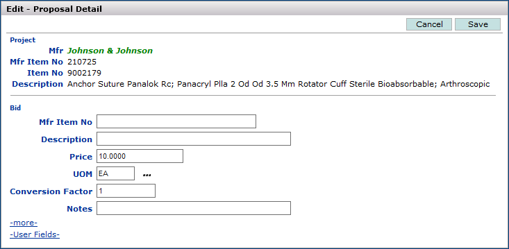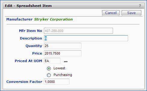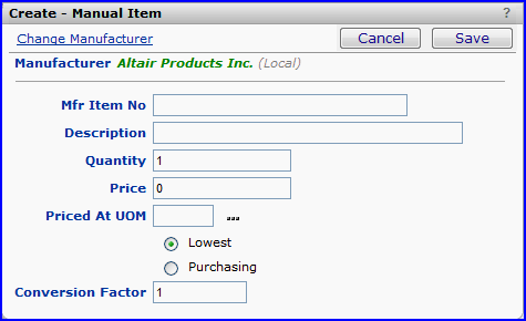 Note: You cannot change the Manufacturer or the Mfr. Item No.