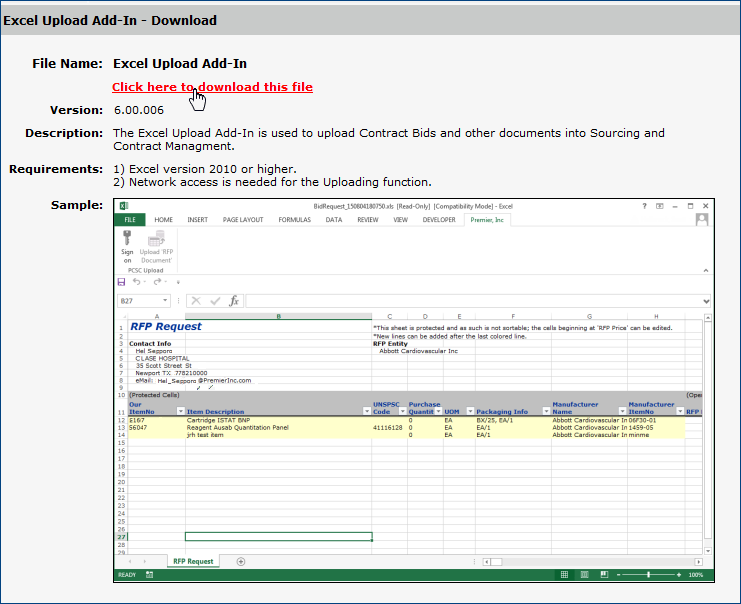 Figure 1 - Downloading an Excel Add-In for Uploading Bids