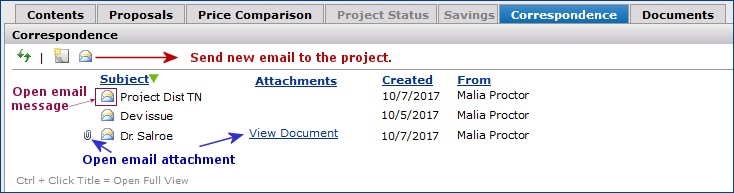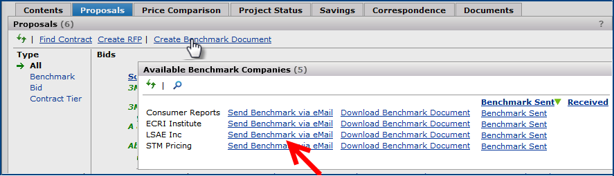 - Email or upload returned proposals and benchmarks to a project.