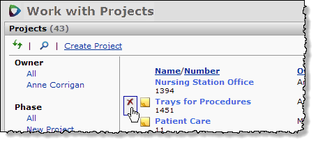 Figure 124 - Deleting a Project from the Projects List