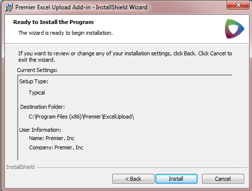 The install wizard offers you the chance to review settings for the add-in (Figure 5). Click Back to review the settings, or click Install to proceed.