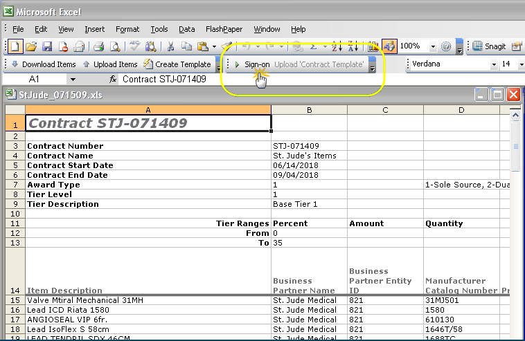 To import returned proposal/benchmark worksheets into Sourcing and Contract Management, you will need the Excel Upload Add-In. The add-in is available as a download from the Administration menu. After downloading the Excel add-in, install and enable it. Be sure to perform the install before you start working with proposals and benchmarks, and creating contracts. Instructions are below.