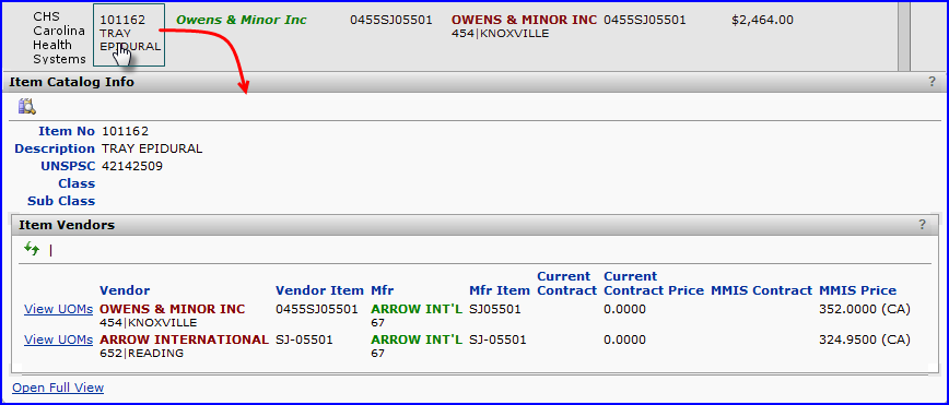 Figure 121 - Expanding Current Price and Quantity Information at Org Level