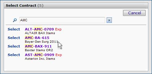 - View existing contract(s) containing project items.