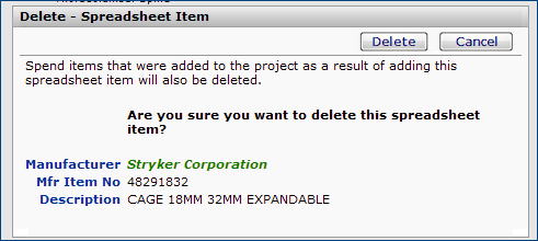 Figure 117 - Deleting a Project Spreadsheet Item