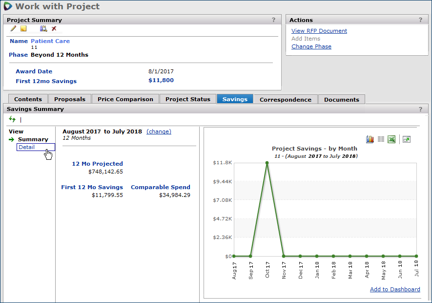 - Use the Savings feature to monitor project savings and savings opportunities.