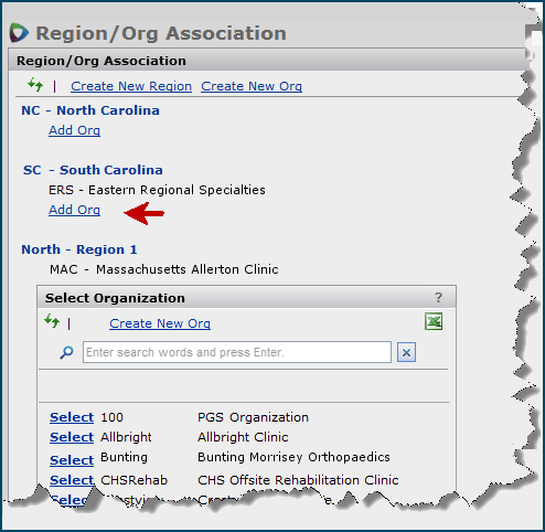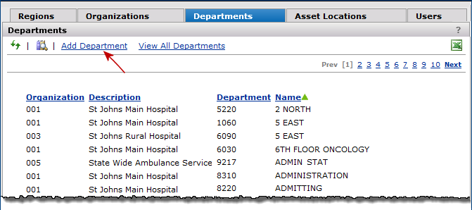 Your site's operational structure may include several organizations, each with multiple departments. One or more organizations can be assigned to a Region. You can view, edit, and create organizations, regions, and services departments from the Administration menu. You can also display and edit the names of supply departments.