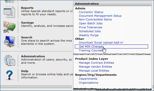 | Connector Status | Location: Administration contents > Admin menu Clicking this link displays recent activity for connectors. A connector is an element of the application used to pass data between Sourcing and Contract Management and stand-alone MMIS systems, such as Lawson. Only sites with an MMIS from a vendor other than have connectors. See View a Connector's Status for details. |