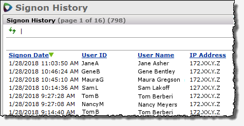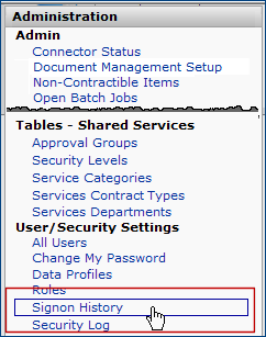 | Sign-on History | Main Contents > Administration > User/Security Settings > Signon History |