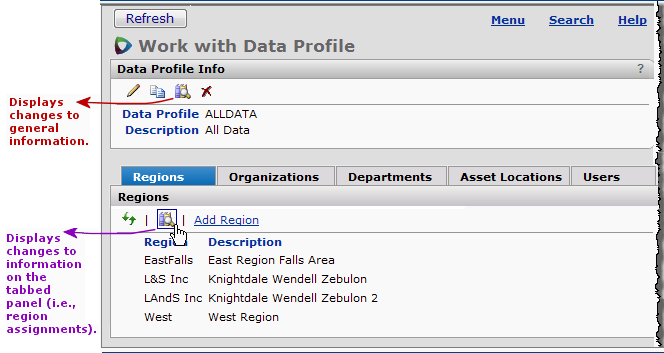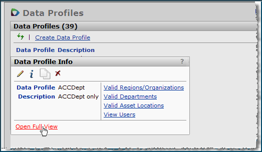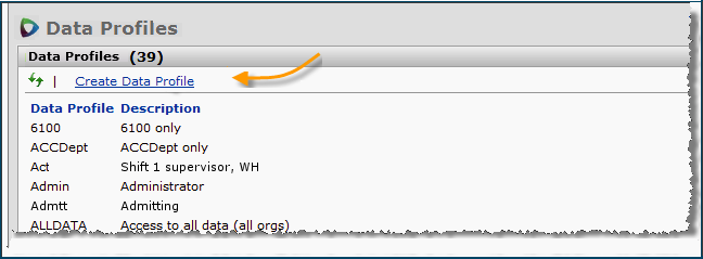 Each user profile also has a data profile associated with it. A data profile specifies the regions, organizations, and departments whose data the user can work with.