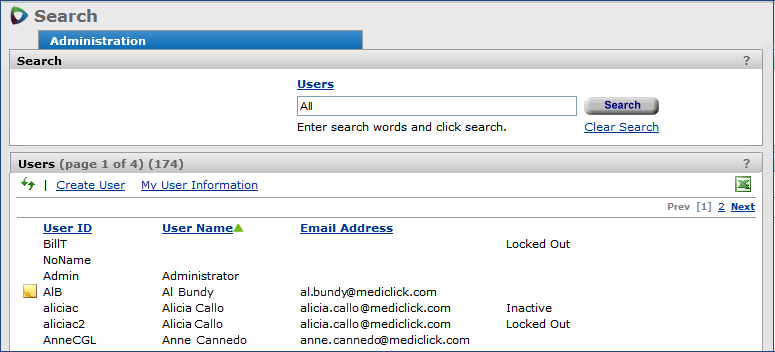 | Users List | Main Contents > Administration > User/Security Settings > All Users |