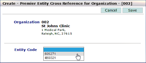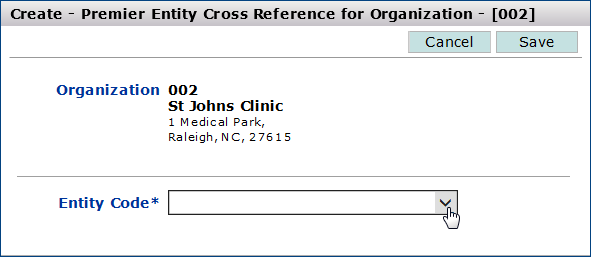 The Create - Entity Cross Reference for Organization panel appears (Figure 38).