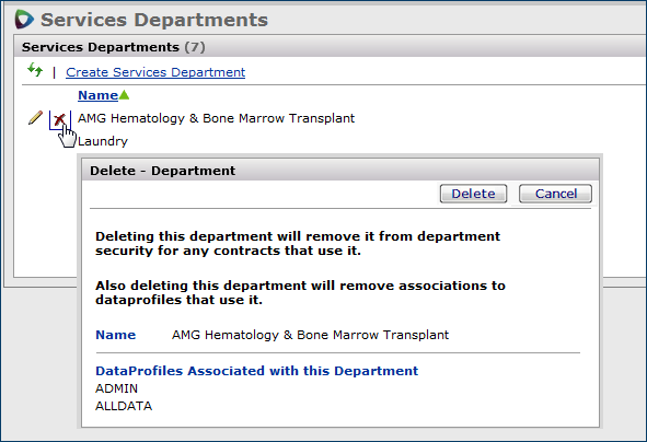 CADept - Permits users to change department names in the supply Departments list (Administration > Region/Org/Department > Departments). Also, note that users can only display and work with departments permitted by their data profiles.