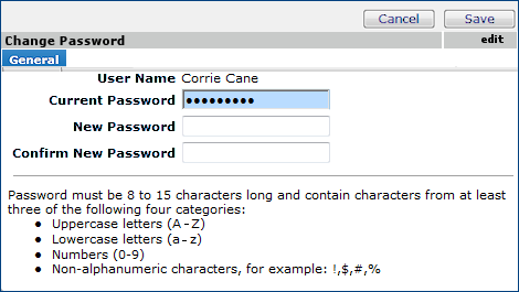 When you log in with an expired password, the password needs to be changed. In this case, the Change My Password panel appears, instead of the normal table of contents (Figure 32). The process is the same as if you were changing your password voluntarily. Except, the Current Password field does not appear.