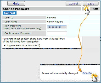 - To view another user's information and change his/her password, click the User ID for the person on the list.