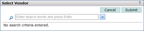 to the left of the search box. The list of results appears if the criteria you entered match the criteria for any vendors.