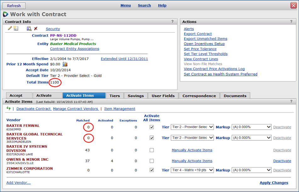 If you would like to manage unmatched items that belong to both a particular vendor and contract, open the contract.