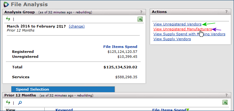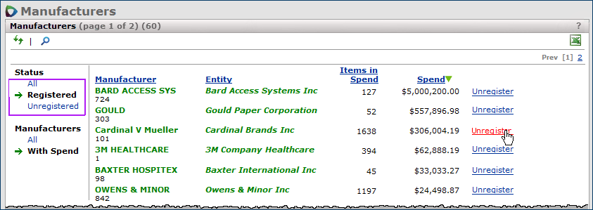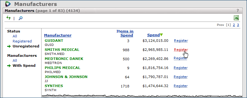 The panels for registration contain sorting tools that rank vendors by spend amount so that you can register those whose spend you consider significant.