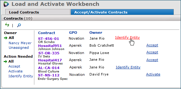 - The "Supply Analysis Workbench" page Actions panel (Figure 9). This link opens the "Vendors and Entities" page. Figure 12 is an example.