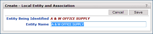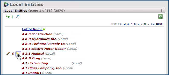 The entity to which each vendor is registered. If the entity is a local entity, the "Local"