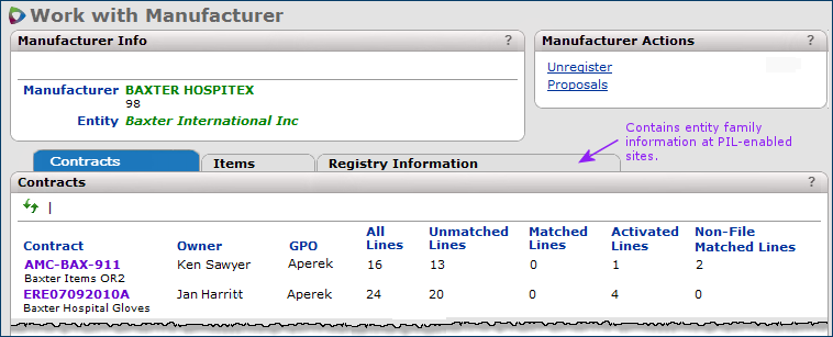Most hospitals purchase supplies from large, nationally known vendor/distributors such as Abbott Laboratories, Inc. and Cardinal Health; and from national manufacturers such as Johnson & Johnson, Ethicon, and others. Services vendors may also include national companies such as Hertz, ADP, ARA, and others. The Product Index Layer (PIL) includes parent and child entities for these "universal" suppliers that you can register to the specific subsidiary (e.g., Abbott Diagnostics, Allegiance Inc.) that your hospital uses.