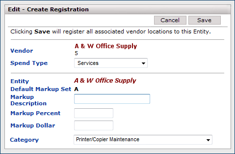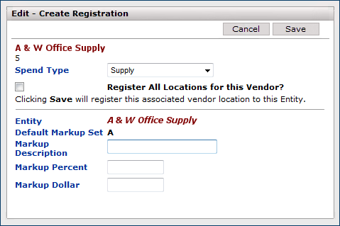 Tip: When registering a vendor, register based on the vendor name, rather than on the vendor location name.