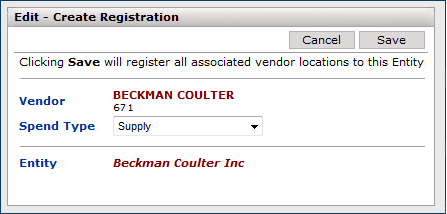 In registering a vendor, you specify the vendor's Spend Type. The spend type options are Supply or Services.