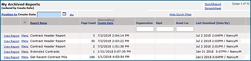 My Archived Reports (Figure 3) is the list of reports that have run since
