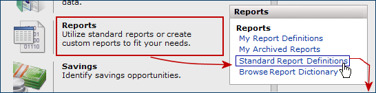 - Standard Report Definitions - report definitions provided by . You can run reports using the report definitions as they are, or copy report definitions, and edit them to produce "semi-custom" reports that meet your own requirements.