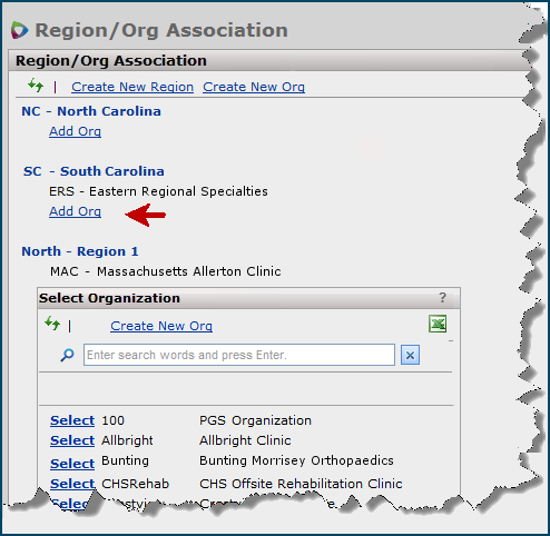 On the main Contents, click Administration > Region/Org/Departments > Region/Org Association.