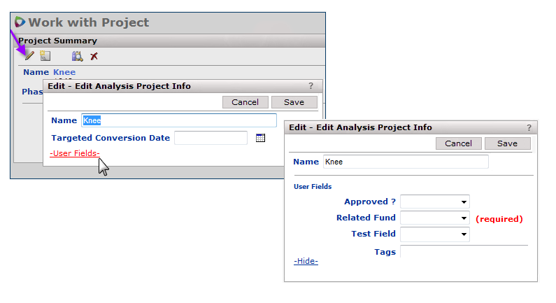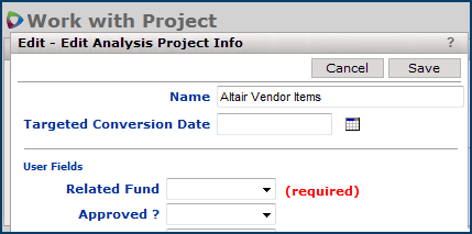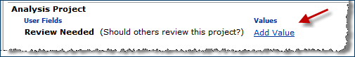The User Fields panel for an analysis project is available from the project edit (Figure 13).