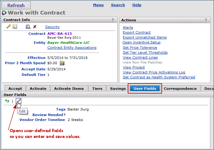 - To access user-defined fields for a supply contract, from the Contract Info panel, click the User Fields tab.
