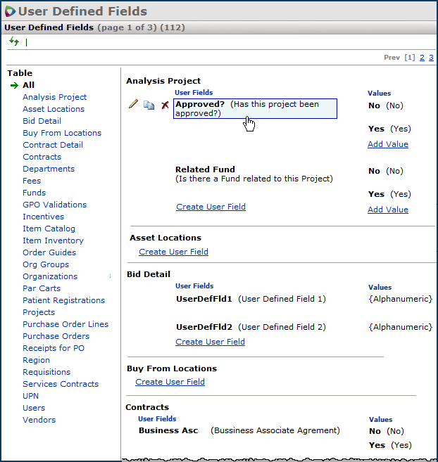 User-defined fields can be associated with organizations, regions, contracts, users, analysis projects, incentives, and GPOs. Here are some ways you can use these fields: