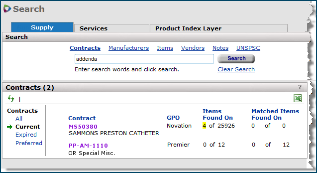 Figure 16 - Searching for the Contract with the Tags Value "addenda"