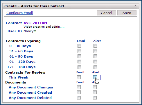 Setting alerts and notifications for each services contract.
