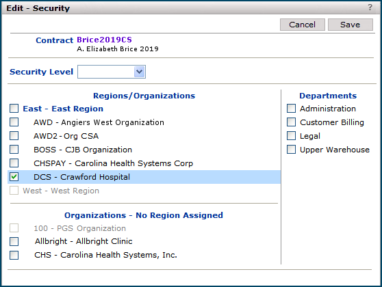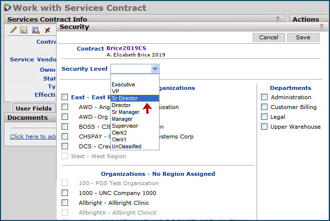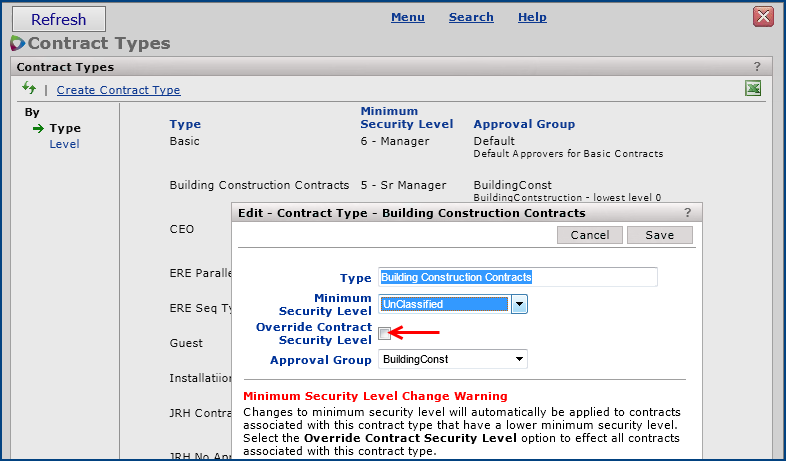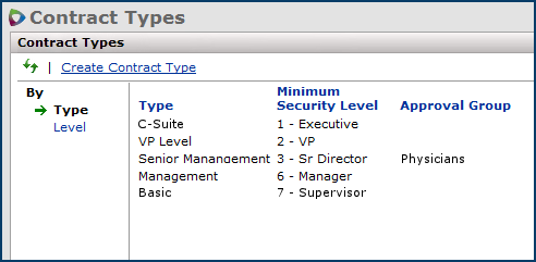 - The type is linked to a security level assigned to users who may work with the contract.