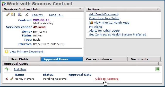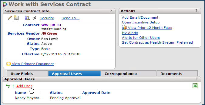 - You can also assign individual users to a contract as approvers.