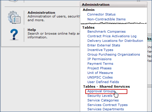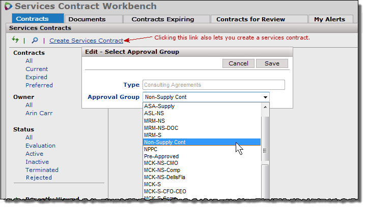 Setting up approver groups and assigning them to services contract types.