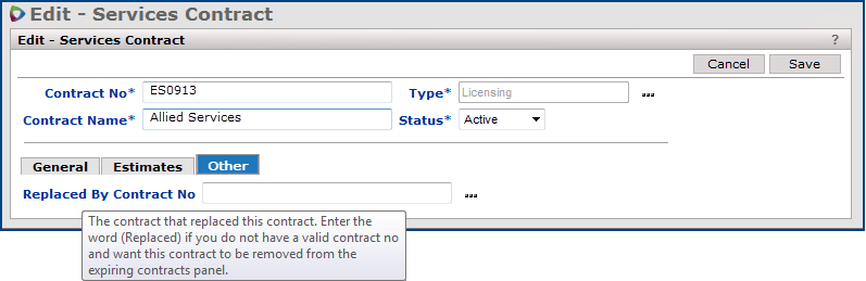 Note: This feature is currently available only for services contracts with the user-defined data type Field Values.