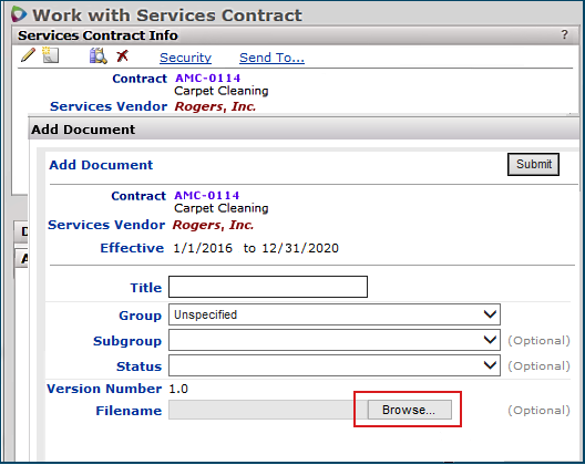 Figure 1 - Work with Services Contracts Page