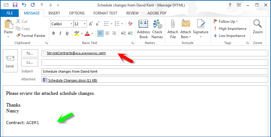 Uploading documents and emailing to and from services contracts.